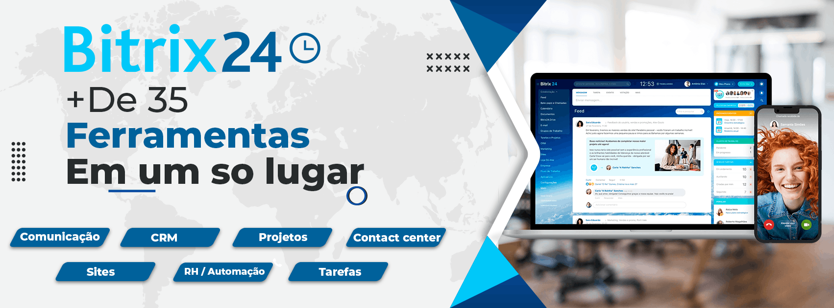 Bitrix24 é um espaço de trabalho unificado que reúne um conjunto completo de ferramentas de negócios em uma interface única e intuitiva. Bitrix24 consiste em 5 grandes blocos: comunicação, tarefas e projetos, CRM, contact center e construtor de sites.